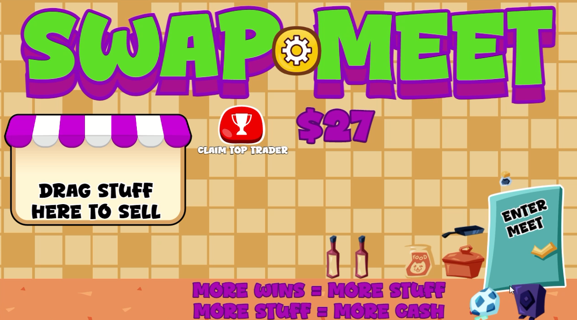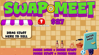 Swap Meet is a roguelite-inspired trading game. Match your items against Rival Traders in fast-paced swap sessions. The first to run out of stuff claims the win, raising the value of your stash and moving you to harder Meets. But be warned—losing a Meet lowers your stuff's value and hurts your bottom line.